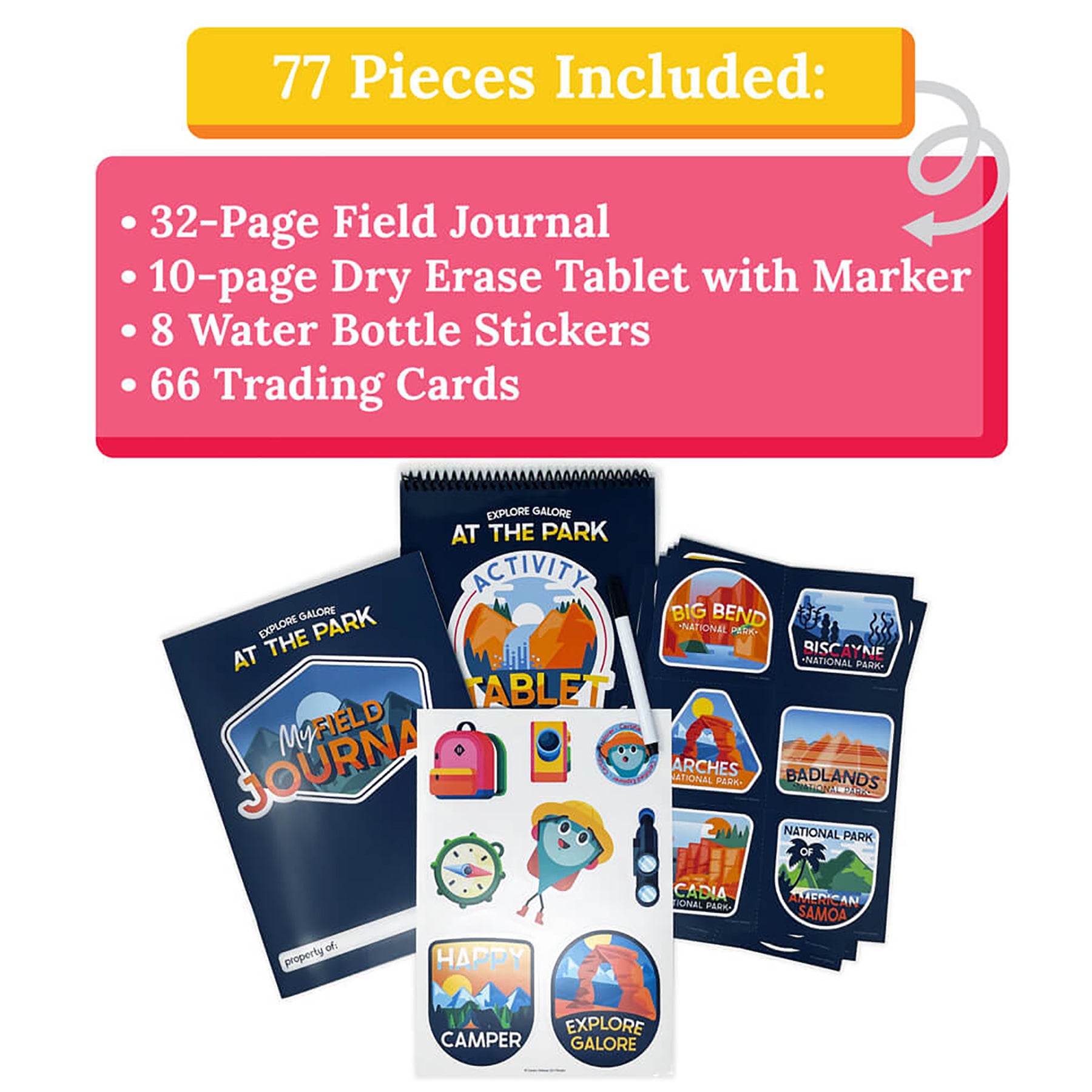 Investigate your world and beyond with Carson Dellosa's Be Clever Wherever Explore Galore: At the Park Wipe Clean Activity Book! Activity books for kids are a great way to teach kids all about US national parks with fun summer learning and road trip activities that are both fun AND educational. This dry erase activity book set includes a wipe clean activity book a dry erase marker, a 32-page field journal, 64 trading cards, 2 blank cards, and 8 water bottle stickers for versatile learning fun. Learn all about US national parks while playing bingo, solving puzzles, completing dry erase activities, and more in the activity book. Record the things you've seen, learned, and experienced during your adventures along the way in the travel journal. You'll even learn interesting geography facts with the national park flash cards while customizing some of your own, too! Perfect for at home or travel, this kit has everything your child needs to get ready for their next adventure, whether its in the backyard or beyond! Practice, learn, and play during long road trips, downtime during the summer, and more.