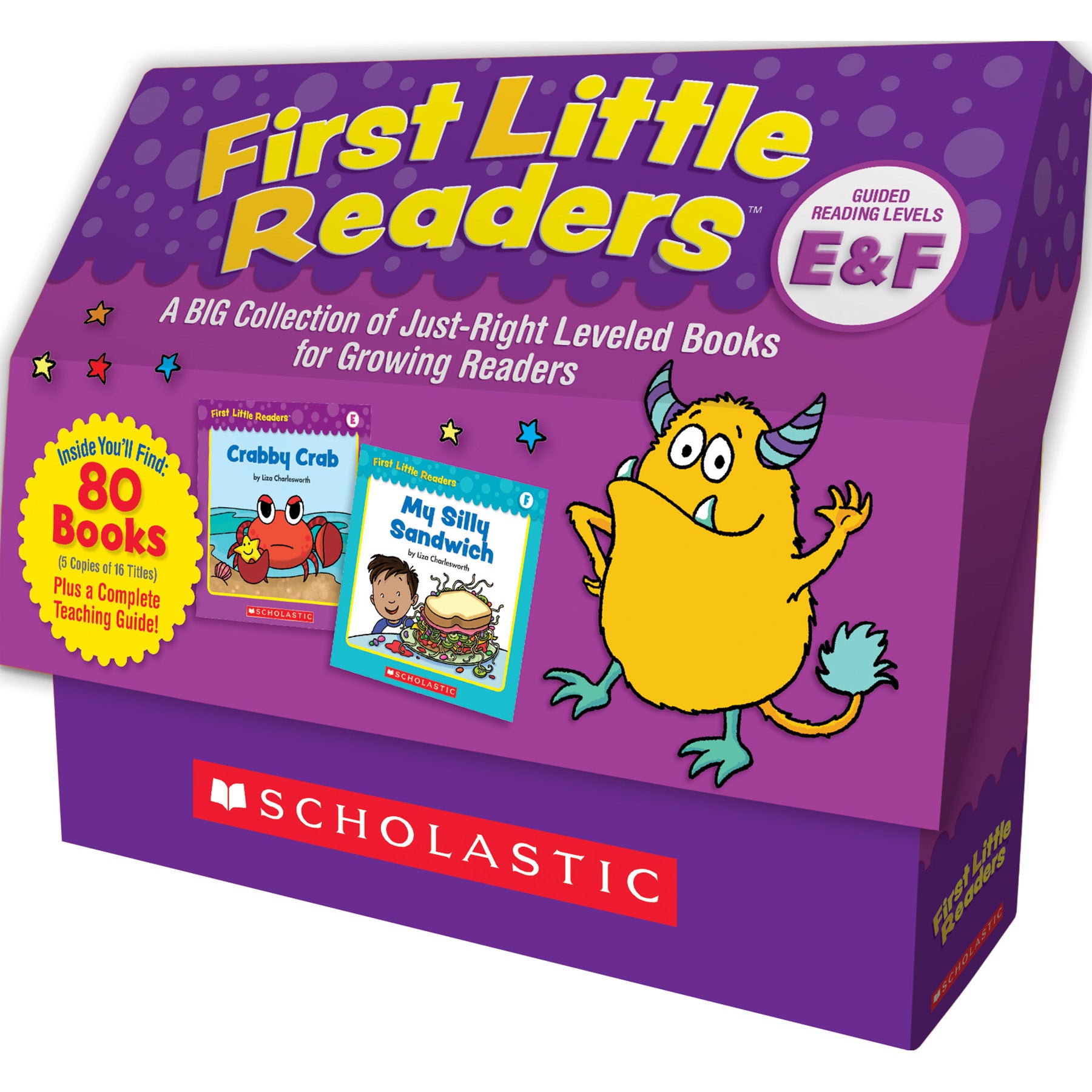 Motivate growing readers with these super-engaging, 16-page storybooks correlated with guided reading levels E & F! Inside this sturdy storage box, you'll find 80 books (5 copies of 16 titles) plus a big teaching guide packed with lessons, tips, and reproducibles. Each book features simple text, decodable words, strong picture cues, and one to five lines of text per page to help ensure all learners "step up" to the next level.