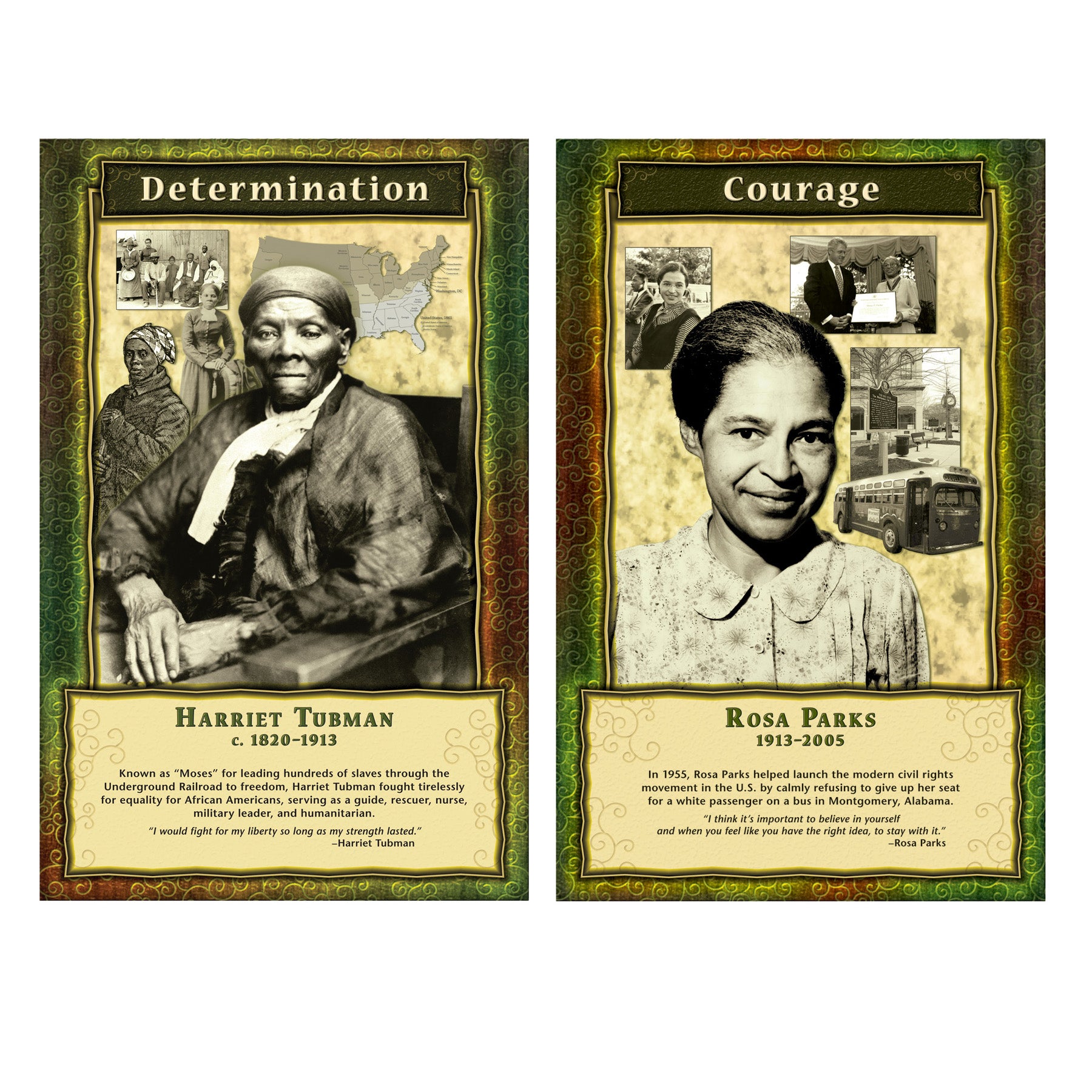 Familiarize students with some of the most powerful character traits demonstrated by successful leaders throughout history. Eight 11" x 17" (27.9 x 43.2 cm) posters feature well-known African American historical figures, their leadership qualities, and the influence of these characteristics on their achievements. Inspirational quotes from each individual underscore their exemplary leadership qualities. Includes 8 pieces.
