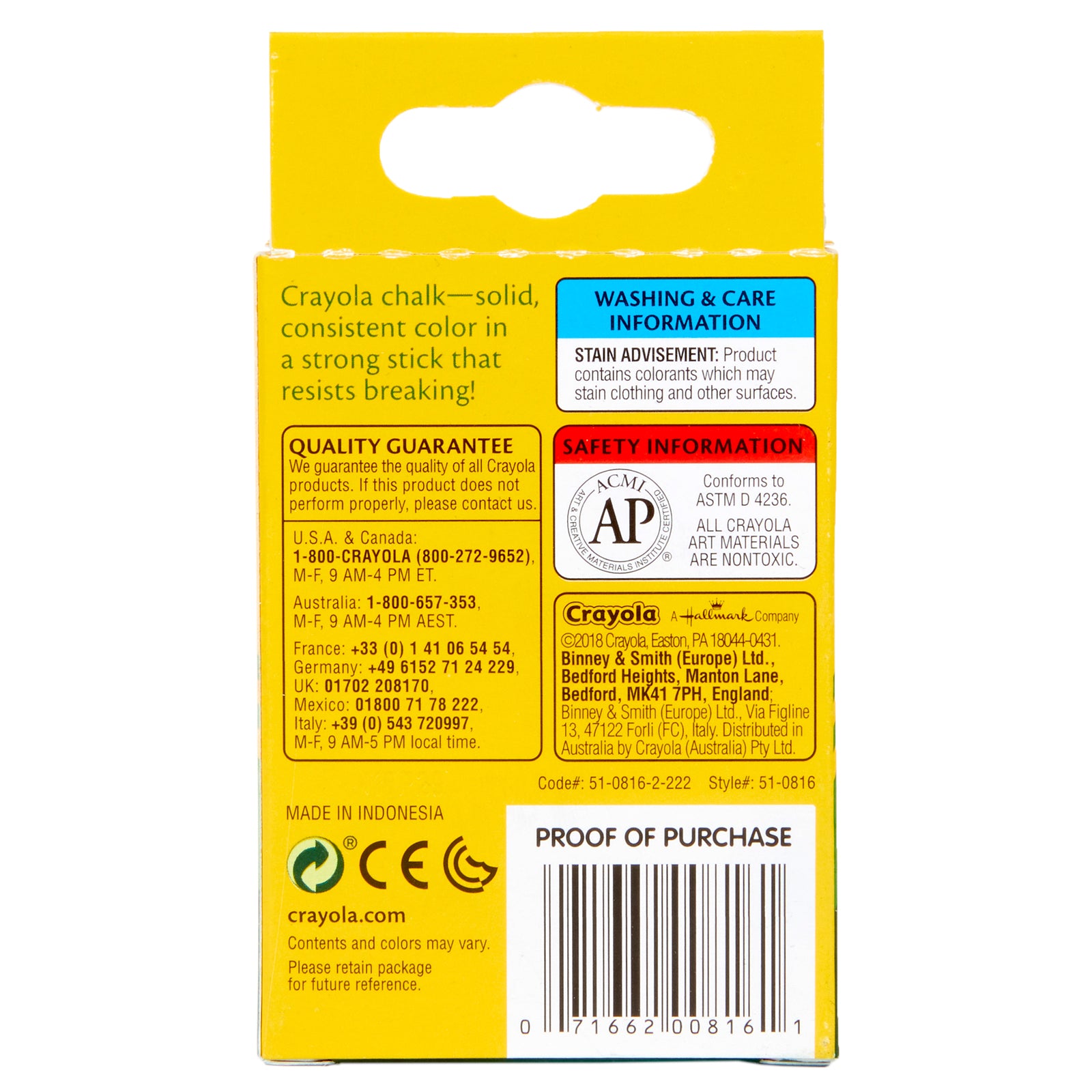 Kids can choose from six vibrant Crayola Chalk colors to draw on chalkboards and various paper surfaces. The bright colors show up particularly well on dark and colored surfaces. Kids can practice writing and drawing on chalkboards, as well as construction paper, cardboard, craft paper and even brown paper bags. The smooth chalk sticks resist breaking and scratching or skipping on art surfaces. Each box includes 12 sticks of chalk 2 each in Red, Orange, Yellow, Green, Blue and Violet.