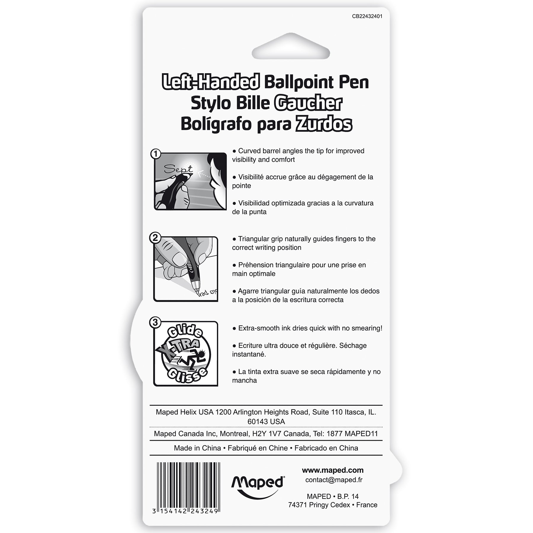 The first pen to offer left-handers more visibility as they write! The Visio Left-Handed Pen by Maped features a unique, curved barrel which angles the pen tip so left-handed users can easily see where they are writing without needing to 'hook' their wrist around. Comfortable, soft-touch triangular grip guides fingers into the correct position for a natural writing motion. Special quick-dry ink also helps against smearing when writing! Sold as a pack of 3 in assorted colors.